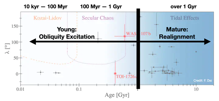 The stellar obliquity, a probe to planet migration history, is the angle between the rotation axis of the host star and the normal of the orbital plane of the planet. Various migration theories with different timescales, e.g., primordial disk misalignment (< 3 Myr), Kozai-Lidov mechanism (10 kyr - 100 Myr), secular chaos (10 Myr - 100 Myr), differ strongly in their predictions on the obliquity. These mechanisms all functions during the youth of the planetary systems (< 1 Gyr). Young planetary systems are the promising targets to constrain the models and timescales of planetary formation and migration.