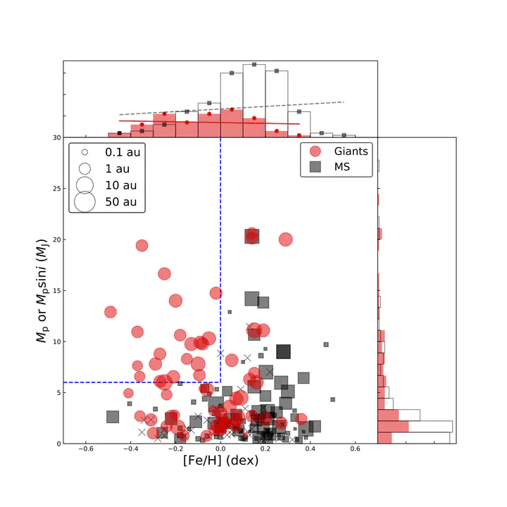 Finally, we explored giant planets around intermediate-mass stars, and likewise found a 4 Jupiter mass gap (e.g. Santos et al. 2017), which is probably a boundary of the giant planet population.